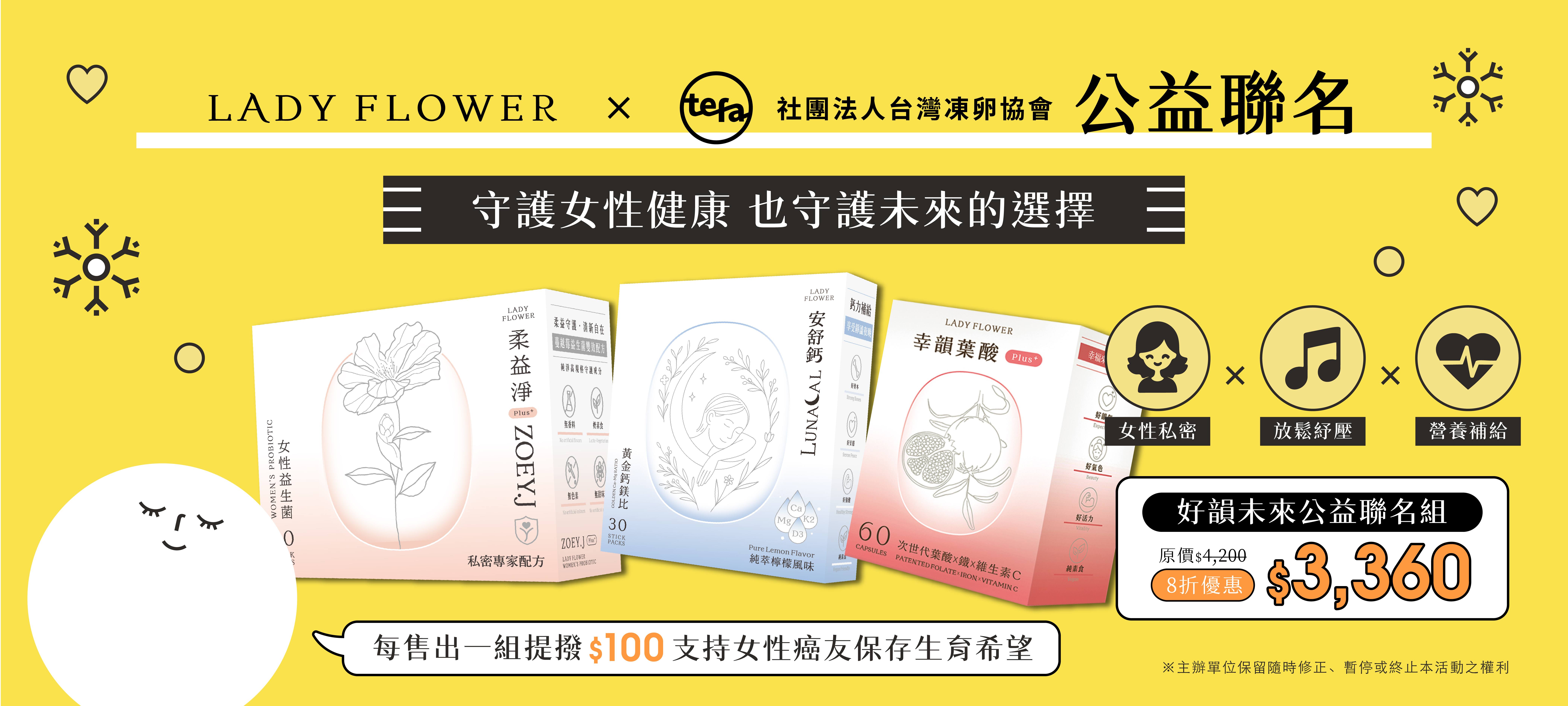 LADY FLOWER 跨界攜手「TEFA 社團法人台灣凍卵協會」,推出期間限定的公益聯名保養組合,喚起社會對女性生育健康與日常自我呵護的重視。