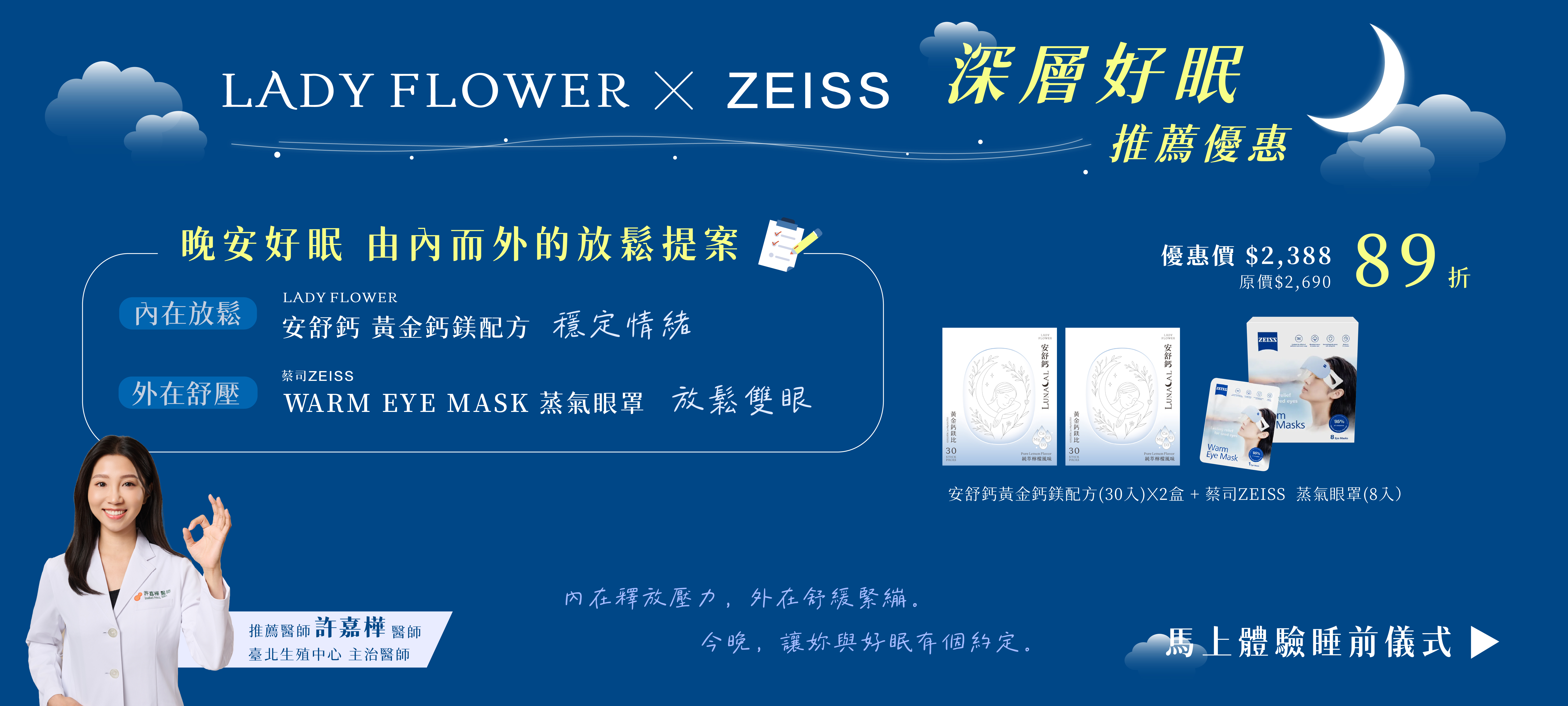 LADY FLOWER 與光學領導品牌 蔡司 (ZEISS),打造【晚安好眠組】,打造睡前 5 分鐘的極致療癒儀式。